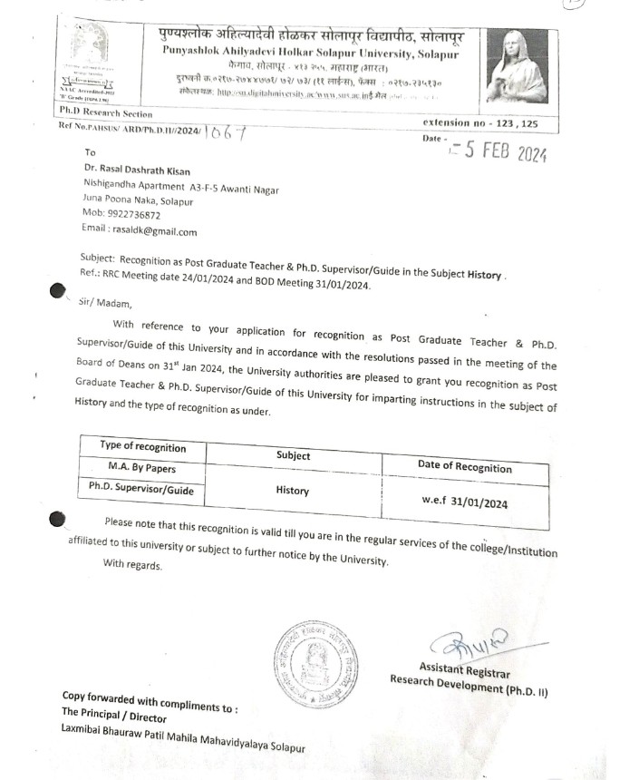 LAXMIBAI BHAURAO PATIL MAHILA MAHAVIDYALAYA, SOLAPUR